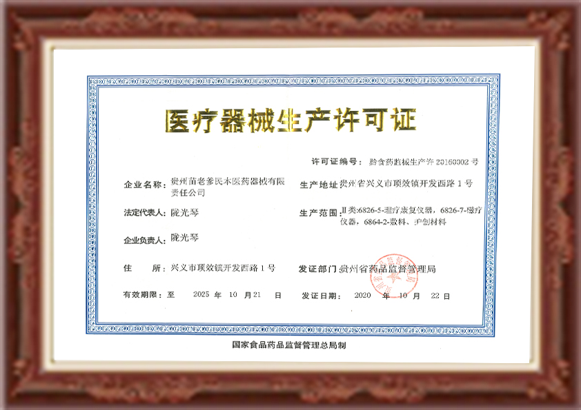 贵州苗老爹民本医药器械有限责任公司创建于2006年4月,坐落于中国四大中药材产地之一、国家级风景名胜区―贵州省黔西南州布依族苗族自治州兴义市马岭河峡谷河畔。公司注册资金500万元,占地10000余平方米。创立以来始终专注于生产经营具有民族特色的外用贴剂产品。 公司长期致力于外用贴剂产品的开发与研究,利用远红外线和磁场改善局部血液循环,加强人体局部新陈代谢原理。开发出永磁镇痛贴、永磁骨质增生贴、永磁风湿关节贴、永磁跌打止痛贴、永磁腰痛贴、永磁肩周痛贴六个外用贴剂产品,经临床试验对相应病症有辅助治疗作用。以不粘皮肤、品质稳定深得广大消费者好评。 公司依靠“以顾客需求为中心,以质量保证求生存”的经营理念,按照ISO13485:2016《医疗器械 质量管理体系 用于法规的要求》和《医疗器械生产质量管理规范》要求,建成GMP标准厂房2000余平方米,配备有挤压涂布机、分切收卷机、岛式异形旋转切片机等专业生产外用贴剂产品的生产线,并建立一套与之相适应的生产质量管理体系,拥有医药专业人员、生产经验丰富、组织能力强的管理技术团队,为公司生产高质量的产品打下了坚实的基础。 |
